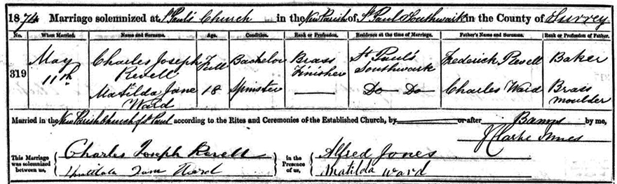 Revell who married 11th May 1874 at St Pauls Southwark.