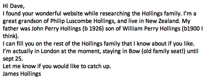 Phillip Luscombe Hollings emigrated to New Zealand in 1894.His bother