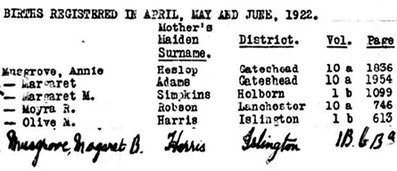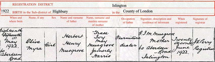 for Olive M Musgrove and secondly for Margaret B Musgrove.