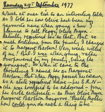 Diary for 1972.Appearently the name Olive Myra was so disliked