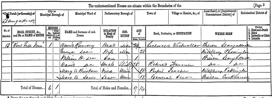 above 1871 census shows the newly married Rumsey family at The Vine