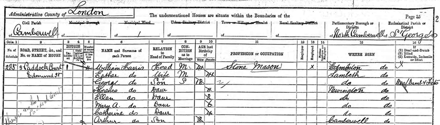 of St George in Camberwell. The family had now moved and are shown as